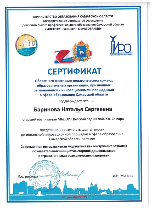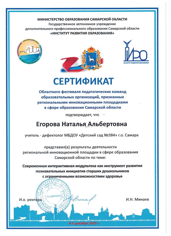 4-5 декабря 2025 года в ГАУ ДПО СО ИРО состоялся Областной фестиваль педагогических команд образовательных организаций, признанных региональными инновационными площадками в сфере образования Самарской области.